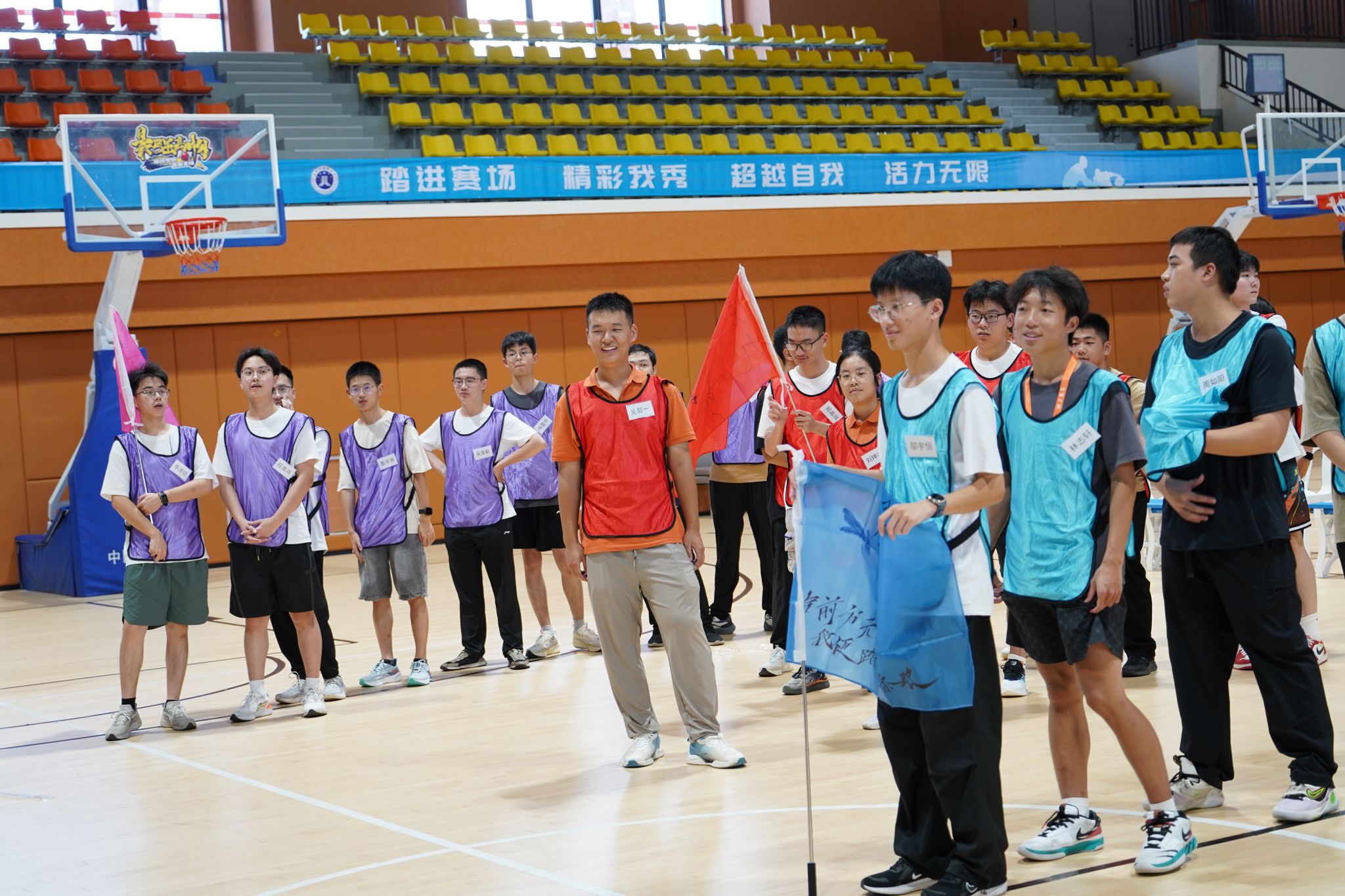 为助力新生快速融入集体,培养团队协作精神与积极心理品质,9月11日下午,福耀科技大学2025级新生心理素质拓展活动在校体育馆开展。本次活动以“聚力成长”为主题,通过一系列精心设计的趣味挑战,让新生们在协作与竞争中释放激情、建立信任,现场气氛热烈,欢声笑语不断。
